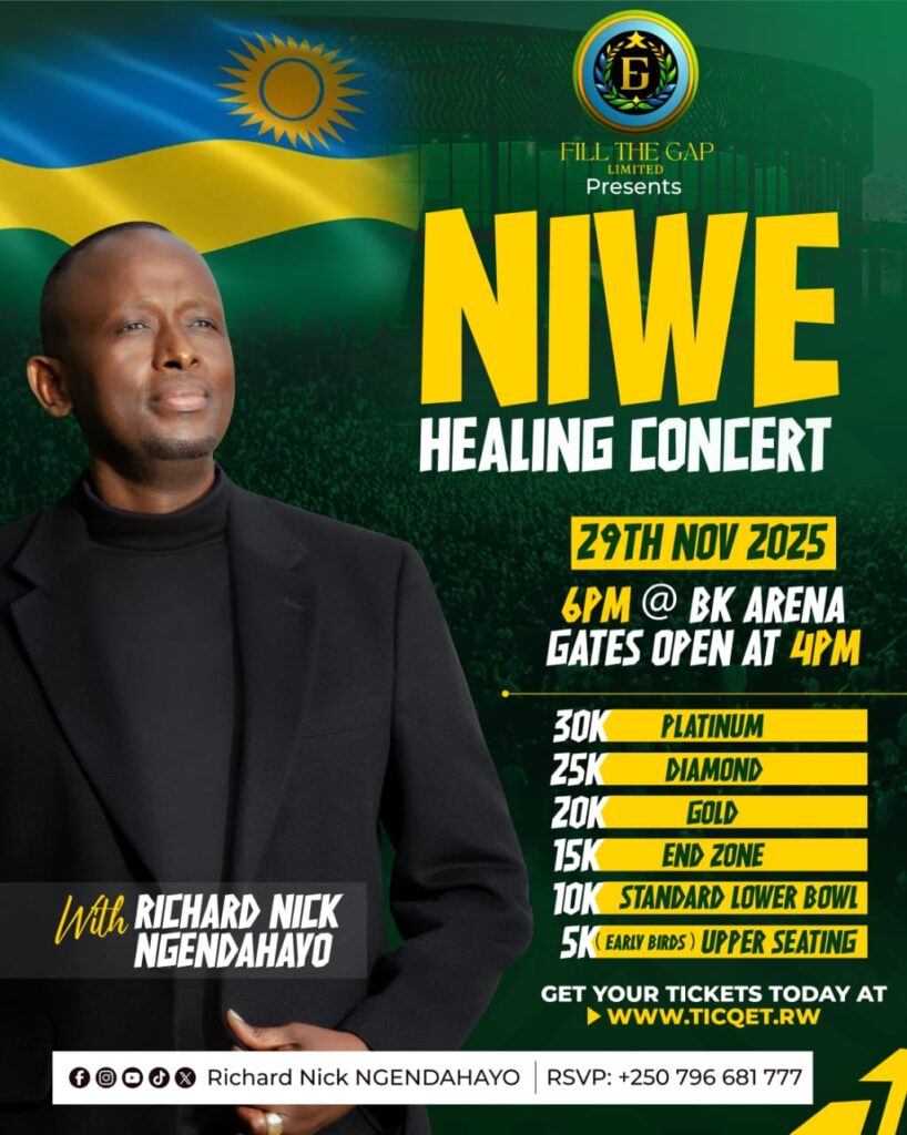 Richard Nick Ngendahayo umaze ibyumweru bibiri ageze i Kigali nyuma y’imyaka 17 aba mu Mujyi wa Dallas muri Leta Zunze Ubumwe za Amerika, ategerejwe mu gitaramo gikomeye yise ” Niwe Healing Concert”, azakorera muri BK Arena, tariki ya 29 Ugushyingo 2025.