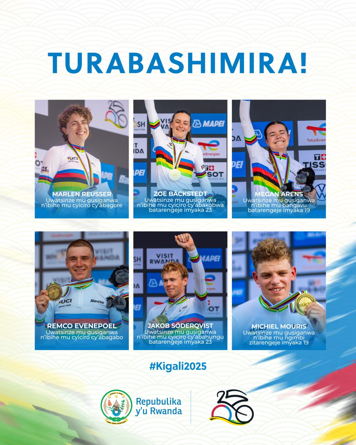 Yagize iti “ U Rwanda rurashimira abakinnyi bose bitabiriye amarushanwa mu minsi itatu ishize yo gusiganwa n’ibihe buri muntu ku giti cye, kandi rurashimira abahize abandi bagatsindira imyanya ya mbere.”