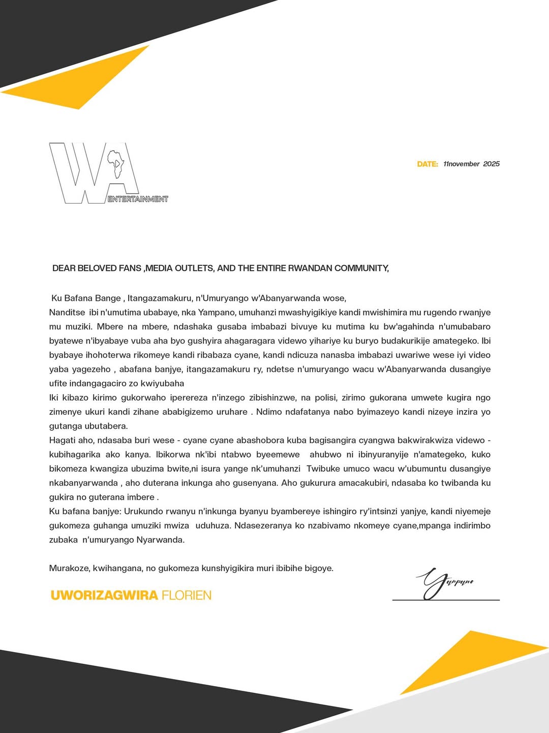Ati “Ndasaba buri wese, cyane cyane abashobora kuba bagisangira cyangwa bakwirakwiza videwo, kubihagarika. Ibikorwa nk’ibi ntabwo byemewe ahubwo binyuranyije n’amategeko, kuko , bikomeza kwangiza ubuzima bwite, ni isura yange nk’umuhanzi. Twibuke umuco wacu w’ubumuntu dusangiye nk’Abanyarwanda, aho duterana inkunga aho gusenyana.”