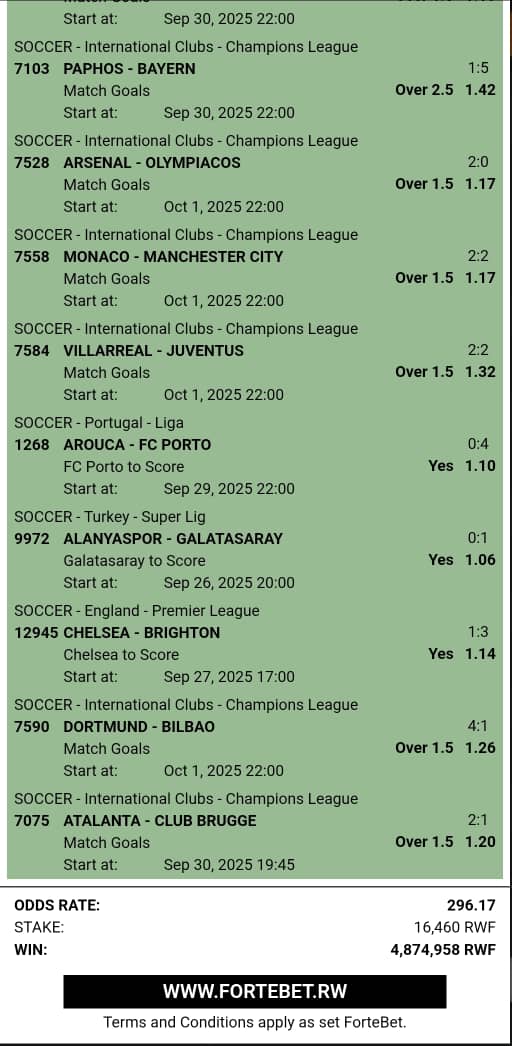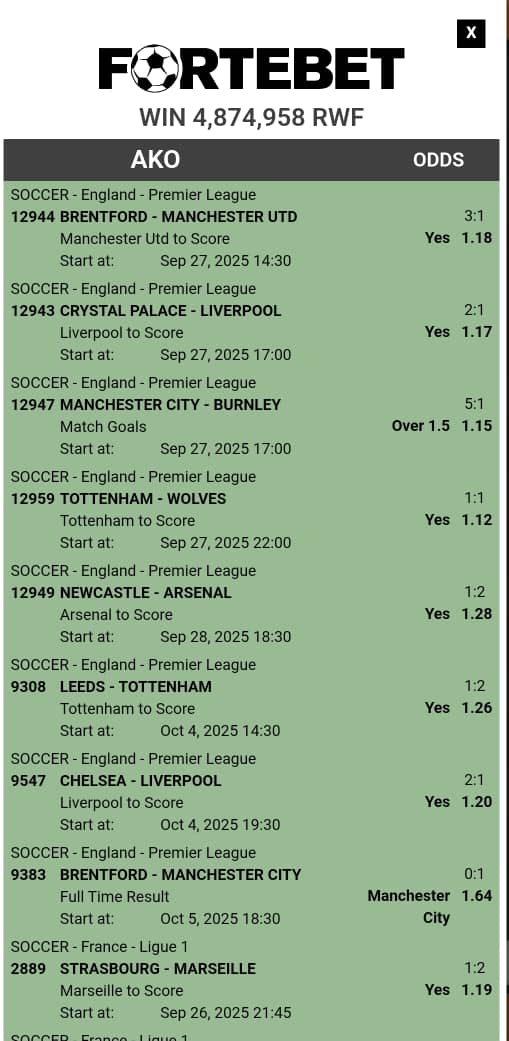 Umwe mu banyamahirwe ba ForteBet yatangiranye icyumweru gishya yambaye isura y’ibyishimo nyuma yo gutsindira amafaranga angana na 4,874,958 Frw, abikesheje itike yategezeho amafaranga make cyane — 16,460 Frw.